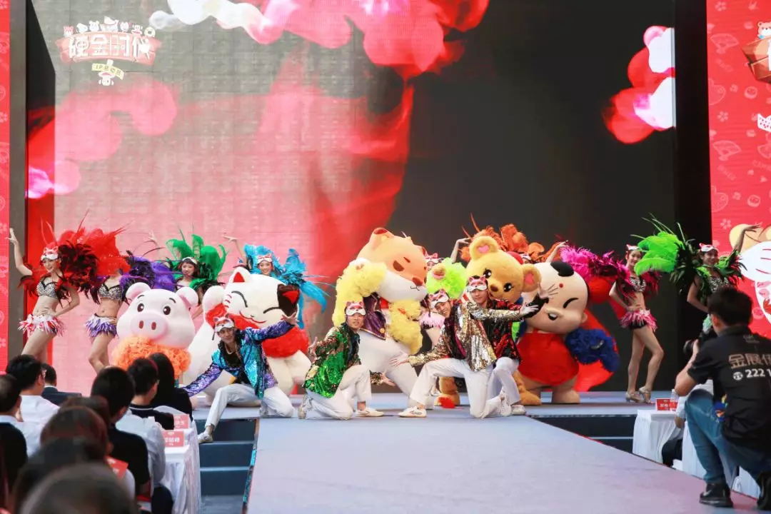 本次活動最精彩之處,當(dāng)屬眾多IP形象出場上演的一出華麗熱鬧的舞臺劇,明豐珠寶特邀大中華區(qū)最具口碑的舞臺劇品牌、來自臺灣的“精靈文創(chuàng)”傾情演繹。臺灣精靈文創(chuàng)曾于中國大陸、中國臺灣、日本、新加坡、泰國等眾多國家及地區(qū)累積16年數(shù)千次的舞臺劇表演經(jīng)驗,服務(wù)過喜洋洋家族、芭拉拉小魔仙、LINE Friends、天線寶寶、蠟筆小新、光頭強等眾多知名IP形象。而此次與明豐珠寶攜手,更是集結(jié)了招財貓、史努比、大嘴猴,動物大聯(lián)盟,招財童子等諸多知名IP,打造出活靈活現(xiàn)的人偶形象,共赴盛會。